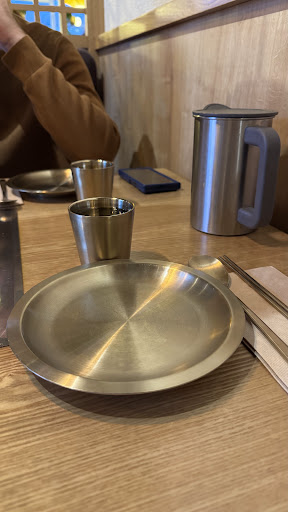 Difficile de donner une note définitive car j'ai du mal à me faire un avis clair sur cet endroit. Pour commencer, l'ambiance y est plutôt agréable et la décoration est soignée. Du plafond à la vaisselle, tout a été bien choisi, ce qui donne une impression de qualité. Un petit dépaysement est assuré durant ce moment, sans déception de ce côté-là. (Attention aux luminaires, qui sont pleins de gras !)
