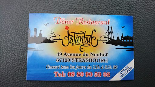 J'aime la viande et l'accueil, tout y est je n'est trouvé que 3 Donner sur Strasbourg qui vende de la qualité au lieu d'avoir 1 pain gonfler au gras trop de Donner ne sont pas aussi respectueux de ce qui vendent et quel clientèle il ne reverrons jamais Istanbul Doner Kebab 49 avenue du Neuhof y as pas mieux dans le secteurs sud .qui ont vraiment 1 viande de très très bonne qualité pour les flexitarien amateurs de bonne viandes de qualité vous serait servi. Pour l'instant je n'est que goûté le Donner j'imagine que les autres plats doivent suivre comme un service parfait. MERCI au patron qui se préoccupée de ces clients et futurs...