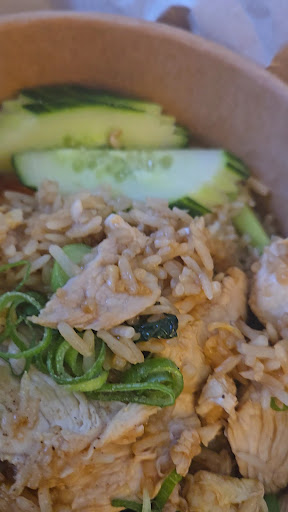 Satay rice: The chicken pieces are huge with an abundance of delicious peanut sauce. You will not leave hungry, everything is yummy and the portions are extremely generous!