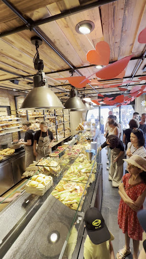 Read moreEmployée (ou responsable?) très désagréable, absence de sympathie et de sens du service. On vient dans cet espace restauration qui affiche une fermeture à 22:30, commander des plats (ailleurs) puis des desserts (dans cette pâtisserie), et ensuite pour une commande de cafés (à 21h15). Ordre logique… la vendeuse vous dit froidement « la cuisine est fermée » (pour les cafés). Or la machine est encore allumée et la caisse pas faite. Je précise cette info en disant qu’on a pris les gâteaux juste avant et on aimerait juste 2 cafés et elle répond sèchement « je sais ce que c’est qu’une machine à café, c’est fermé ». Bon au moins elle a mérité son avis, et c’est bien dommage pour l’enseigne. Le bar à vins à côté (qu’elle aurait pu nous conseiller de visiter en alternative, aurait eu au moins un léger sens de service qui ne m’aurait pas incité à témoigner ici) a eu la gentillesse de nous servir et nous informer que ça reste bien ouvert jusqu’à 22:30. La tarte en photo, honnête mais pas non plus extra (fin...