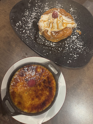 We ordered a delicious spread of pork shank, shrimp and salad, and every dish was bursting with flavor and beautifully prepared. For dessert, we were treated to a classic crème brûlée and a unique apricot lavender creation — both absolutely divine and the perfect ending to an unforgettable meal.