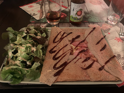 Read moreEntre délices et supplices ? J'étais impatient de tester cette crêperie nouvellement installée. J'ai donc réservé une table pour 4 en terrasse. Première mauvaise surprise : les tables en terrasse n'étaient pas installées car trop froid quand nous avons quitté le restaurant à 21h il faisait encore 22,5°C ! Nous avons donc dû nous installer sur une table haute aux chaises inadaptées pour nos enfants de 9 et 10 ans. Deuxième mauvaise surprise : un écran géant en face de nous pour - je suppose - sonoriser à moindre frais le restaurant. A la maison, la télévision est éteinte lors de la prise des repas. Résultat ? Les enfants avaient le regard constamment porté sur cet écran de malheur ! Et personnellement j'avais beaucoup de mal à me concentrer sur mon assiette ! Troisième mauvaise surprise : la salle du restaurant est très réverbérante. Conséquence ? La musique et les discussions des autres convives résonnaient plus que de raison. C'était vraiment insupportable ! Passons maintenant à ce pourquoi nous sommes venus : les crêpes :-) Mention bien pour les crêpes salées. Mention passable pour les crêpes sucrées : j'avais pris une "compote de pommes sucre cannelle" mais la compote de pommes n'était pas faite maison ... c'est bien regrettable. Mention insuffisant pour les glaces : très alléchantes à l’œil, elles sont beaucoup trop sucrée au goût. Je reviendrai certainement pour une crêpe salée si j'ai la certitude d'avoir une place en terrasse. Terminons par une note positive : le service est rapide, courtois et souriant. C'est suffisamment rare pour le...
