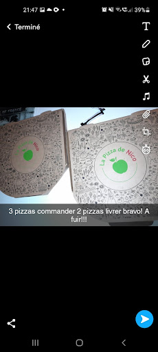 Read more3 pizzas commandé 2 pizzas livrer ! Lorsque l'on demande des explications par téléphone on nous demande de se plaindre auprès de ubereats pour demander le remboursement de la pizza manquante C'est sûr que ça nous arrange de commander 3 pizzas et d'en avoir deux la blague. Heureusement Rayan livreur ubereat nous a proposer de faire l aller retour pour récupérer la pizza manquante. Mehdi TRES TRES PRO BRAVO. Quand aux restaurateurs même si les pizzas ne sont pas mauvaises je ne commanderais plus dans ce pseudo resto Et ne manquerai pas de vous faire...
