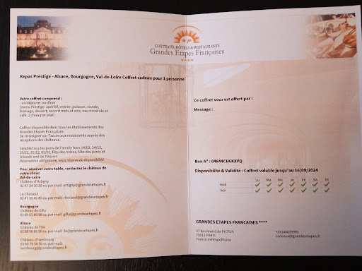 Nous avions acheté des bons cadeaux pour un anniversaire. Les bons dataient du 17/09/2022 et nous les avions réservé pour manger dans le restaurant gastronomique. Ils étaient donc valables jusqu'au 16/09/2024.