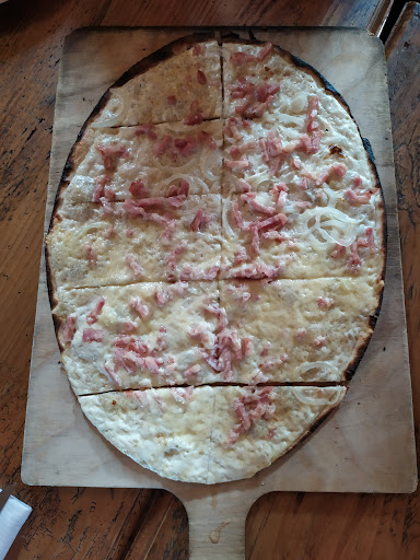 Je passe tous les jours devant ce restaurant mais jamais Ă©tĂ© tentĂ© d'y manger. Mon Ă©pouse a voulu tester et nous avons rĂ©servĂ© le 20 mai. Alors l'accueil a Ă©tĂ© au delĂ de nos attentes. Nous nous sommes tout de suite senti a l'aise. AgrĂ©ablement surpris par la dĂ©co mĂȘme si ça fait vieillot, nous, en ce qui nous concerne, avons trouvĂ© ça gĂ©nial et original. Bravo pour les vieilles portes au plafond, ainsi que les tables faites avec des anciennes machines Ă coudre. Concernant le service, il a Ă©tĂ© parfait. La patronne a Ă©tĂ© aux petits soins. Concernant le menu, nous avons commencĂ© par une flambĂ©e histoire de gouter et pour voir si elle Ă©tait meilleure que chez les deux concurrents du village. Ben honnĂȘtement elles sont parfaites. Rien a redire. Mon fils et moi sommes restĂ© sur la flambĂ©e et mon Ă©pouse a pris un onglet. Tres bon. En tout cas, je recommande ce restaurant car niveau qualitĂ©, prix et accueil, il y a un sans faute. Nous reviendrons c'est certain. Bravo Ă toute votre Ă©quipe pour votre dĂ©vouement et votre sympathie Merci