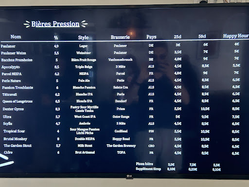 Read moreCarte très bien fournie, surtout en bière ! Ils ont aussi beaucoup d'autres choses, comme des rhums ou autre alcools forts ainsi que des boissons sans alcool tres sympa. Ambiance très sympa, et ils organisent des événements régulièrement. J'étais là un lundi et ça dansait la salsa 💃, ce qui a participé à la bonne ambiance.
