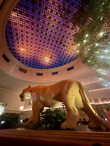 We had dinner here one night during Christmas week. We easily made a reservation through Google. Our French is pretty bad, but the staff was easily able to speak English with us and take our orders. It’s a very interesting room with a huge tiger in the middle and a beautiful ceiling. We ordered a couple of the tarte flambe which is their specialty and you can actually see the brick ovens in the background making these. It was quite good and I highly recommend the traditional one. We also had excellent Alsatian white wine and Christmas beer. My son loved his kids meal, burger and frites.
