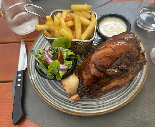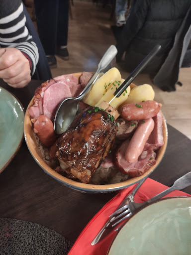 Now, for the real deal – I went for the braised pork shank with sauerkraut, and my friend dug into the roesti paysan. Seriously, that pork was something else! Even my friend, not big on pork, couldn't get enough. Top-notch flavors all around.