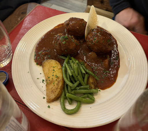 Staff were very friendly and attentive and drinks and food arrived in a timely manner. I had ordered a Cordon Bleu with Munster cheese (I do like my cheese ripe) and my partner ordered the Fleischkiechles (meat balls). Both dishes were excellent and I would rate this as one of the better meals we had on our trip. My only "regret" was that the portions were huge and I had to give the desserts a miss.