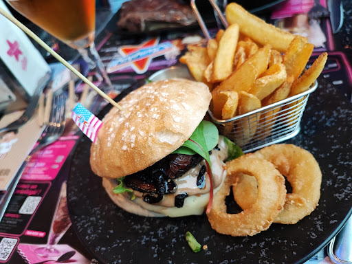 Read moreI enjoyed dining here. I'm an American expat living here in France so when I saw an American themed diner, I knew I had to try it. The food was actually pretty authentically American, by which I mean it was greasy, salty, and exactly what you would get at, say, Denny's or IHOP. The decor made me laugh because everything on the walls and in the restaurant really is 1950s Americana memorabilia: Elvis, Marilyn, motorcycles, and milkshakes. Being in France, the service was very French, not overly friendly but efficient. However, one advantage of this being a restaurant in France is that dogs are allowed inside. Next time I'm in the area, I'm definitely coming back to this restaurant to try more...