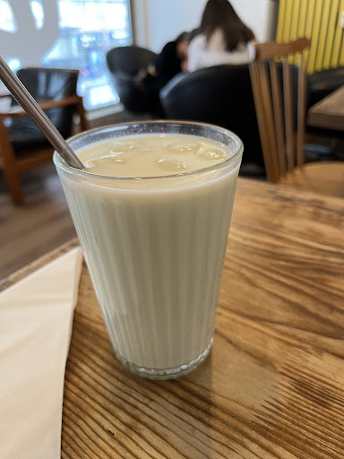 Als wir dann an der Theke angekommen sind, wurde uns klar, dass samstags nur ausgewählte Speisen bzw. Brunch-Angebote verfügbar sind. Daher mussten wir uns kurzfristig umentscheiden. Letztendlich haben wir aber trotzdem etwas gefunden, das uns zusagte. Die Säfte und der Kaffee – insbesondere der Chai Latte – waren sehr lecker. Auch das Essen war hervorragend und der Nachtisch einfach himmlisch.