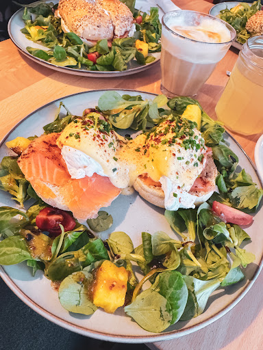 Pour un boisson chaude, un jus, un plat principal (par exemple des Eggs Benedict) et un dessert (Muffin au spéculoos), nous avons payé 76 € à trois. C'est un peu cher, mais cela en valait vraiment la peine sur le...