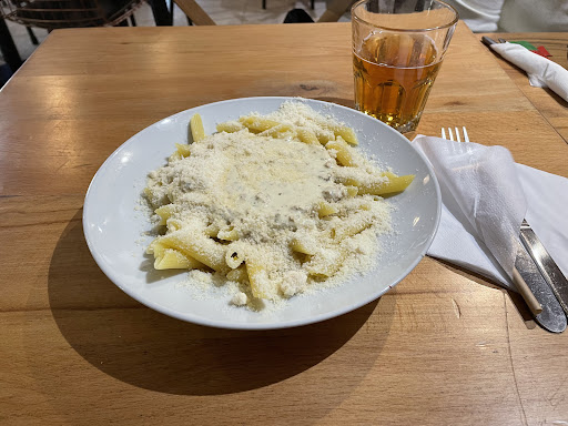 Read moreIl met la pâte et la sauce, du parmesan par-dessus, tiens mange carbonara sans sel et sans poivre ce n'est pas un carbonara, il n'y avait aucun amour à la préparation. J'étais venu pour les bonnes notes je suis déçu.