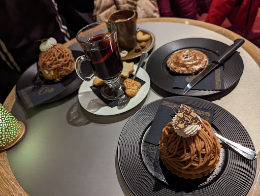 Read moreTrès déçue de l'endroit. La décoration de Noël était très jolie, le salon de thé en lui-même également, j'ai été bien installée mais niveau cuisine, c'était catastrophique. Le jus d'oranges pressées servi dans un verre lamentable (+6€ les 25cl tout de même), le jus maison ne s'appelle maison uniquement car ils mélangent deux jus ensemble (des jus pas maison), le verre à eau digne de cantine plein de calcaire (pas bien visible à la caméra mais à l'oeil nu c'était rebutant), le chocolat chaud que je fais moi-même à 3h du matin sévi dans une petite tasse, le plat fade avec des champignons un peu caoutchouteux (rappelant ceux des conserves), la sauce qui sent le citron, pas de sel ni poivre, on me dit qu'on me ramène du pain, il n'est jamais arrivé, d'ailleurs on a tardé à prendre ma commande car ils discutaient entre eux. À midi, ils ne savent pas quel est le jus maison ni s'ils en ont. La salade était encore ce qu'il y avait de meilleur même si la présentation faisait également cantine. Le choix des plats laissait également à désirer. Christian est connu pour ses pâtisseries mais vu la déception, je n'ai même pas essayé, je suis allée ailleurs ! 21€ pour absolument rien aimer, c'est un comble. Je n'ai vu qu'un établissement aussi catastrophique, je ne pense donc pas être si difficile. Je comptais ne mettre qu'une étoile, mais la serveuse avait l'air si adorable et a su accueillir la critique, ce qui est déjà, en soi, professionnel. Elle m'a également assuré que tous les produits étaient frais, pourtant les champignons de ma pizzeria en bas sont plus comestibles. Je ne pense pas laisser une seconde chance à cet établissement, payer 21€ pour un plat et un chocolat chaud, ok, mais j'attends de la qualité que ce soit au niveau de la vaisselle et des produits, or là il 'y avait de la...