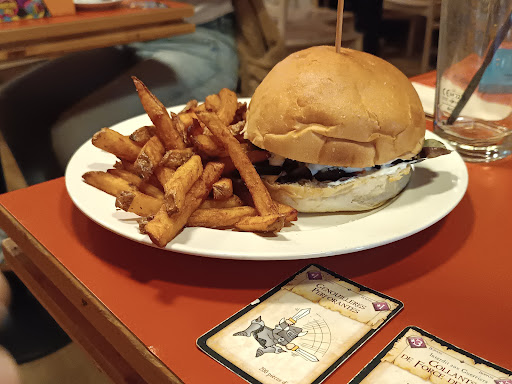 Read moreNice place with lots of boardgames in mostly french obviously but also some english and anyway many familiar games. and good food and drinks. A nice terrace with several long tables. The guests are mostly relatively young nerdy people, very lovely. The menu has both high-carb fatty food for the lovers of that: bread with meats and sauces and fries and oily salad, and some delicious plantbased foods that I took. Also high on the oils but maybe its french. My dish had a lentilmash, fried ricepuffs, bread and some spread, and salad and some delicious plant tagliatelle. It was understaffed, not...