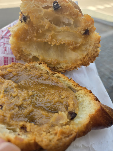 This is a very clean patisserie and bakery. The Crookie caught my eye, so I gave it a try. It's a croissant with a chocolate chip cookie baked into it. It was warm and the chocolate was melted a little. The inside of the croissant was a little creamy and soft cookie dough. The young woman at the counter was so nice and friendly. She was adorable and helpful. She is a real asset to the company. There are two counter seats by the window. The decor was cute and on point. There were many other options that...