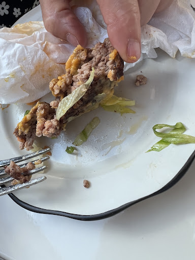 When our food finally arrived, it was a letdown. The burger was below average, with fatty chunks and little flavor. The fries tasted like burnt oil and were some of the worst I've ever had in France. To make matters worse, the burger was completely cold. The manager claimed this was due to the avocados, but the entire burger was cold, not just the avocados.