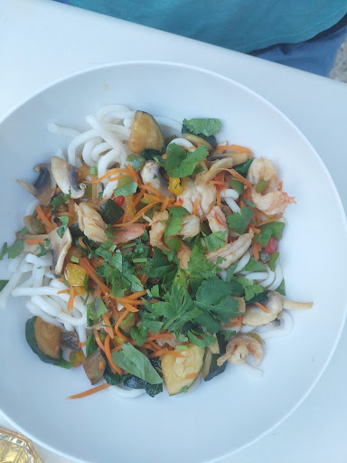 Le prix semble correct d'emblée, mais il y a peu d'ingrédients et il sont posés sur les pâtes ou le riz pour un beau visuel gourmand. La forme des récipients en trompe-l'oeil ne permet pas de juger visuellement sur la quantité non plus. C'est finalement notre ventre qui grogne en milieu d'après midi qui finit de nous convaincre : on ne va pas faire de régime ce soir ! Les boissons sont servies dans des gobelets en plastique, déjà petits et ne sont pas complètement remplis, en dessous du repère même... D'ailleurs le système de formule est aussi en trompe-l'oeil chaque élément est à rajouter (+1€, +3€) pour alourdir la facture. Le restaurant est très beau (pourquoi les sodas ne sont t'il pas servis dans des verres dans ce joli cadre ?) mais n'allez à l'étage que si vous aimez être assis contre un mur : c'est une bonne astuce pour faire consommer plus vite les clients lorsqu'il y a foule... enfin s'il y avait foule... Ps : les clients ne sont pas dupes vous savez, à force on repère les...