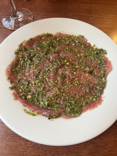 on to food. started with the beef carpaccio, which could have been a bit thinner but the nice pesto spread over the top of it made up for it. I had perfectly cooked steak frites in pepper sauce and my dad got the duck. we both throughly enjoyed our meal and had to finish with creme brulee. i would definitely recommend this restaurant to a friend. the owner made us feel like family and that is the key to good dining.