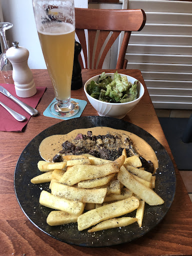 Read moreAlmost perfect! The steak was perfectly cooked, juicy and of restaurant quality, the blue cheese sauce was absolutely stunning even though it had a rather brown appearenxe and of course the fries were perfectly crunchy outside and soft and fluffy inside. Nothing to complain about there. If i need to criticise the food, The salad was too little. Thats all. The beer was one of the most delicious beers i have ever drunk (mort subite), the creme brulee needs a hint more of real bourbon vanille but apart from that it wasburnt to perfection and even flambéed with the dangerously delicious absinthe of the house. Only when two of the dtaff sat rigjt in front of the open door and window (due to the intense heat!) and started smoking tobacco, i almost lost myself. You shouldnt do that at all, but even less when paying customers are around. Apart from that very bad situation, it was...