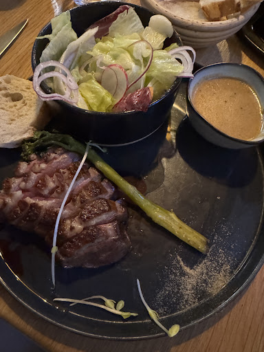 Read moreEin wunderbares liebevolles kleines Lokal. Spezialisiert unter anderem Fleisch über offenem Feuer zu zu bereiten. Wir haben 2 Fischgerichte und 1 Fleischgericht bestellt. Die Karte gibt es auch auf Deutsch und Englisch. Das Lachsgericht war nur als Vorspeise aufgeführt aber man ist unserem Wunsch nachgekommen und dies als Hauptgericht zubereitet. Das Kabeljaugericht war mit einer Kräuterkruste und Gemüsebeilage. Das Fleischgericht war aus zartem Rindfleisch und Rote Bohnen. Alle Gerichte waren sehr aromatisch, sehr elegant zusammen gestellt. Das beste Restaurant was wir in Frankreich besucht haben. Der Service ist sehr zuvorkommend, aufmerksam und man fühlt sich als Gast sehr wohl. Wir werden dieses Lokal wieder besuchen wenn wir wieder da sind Un petit restaurant merveilleux et affectueux. Spécialisé, entre autres, dans la préparation de viandes sur feu ouvert. Nous avons commandé 2 plats de poisson et 1 plat de viande. La carte est également disponible en allemand et en anglais. Le plat de saumon n'était répertorié qu'en entrée mais notre demande a été respectée et préparée en plat principal. Le plat de morue était accompagné d'une croûte d'herbes et d'un accompagnement de légumes. Le plat de viande était composé de bœuf tendre et de haricots rouges. Tous les plats étaient très aromatiques et préparés avec beaucoup d'élégance. Le meilleur restaurant que nous avons visité en France. Le service est très courtois, attentionné et on se sent très à l'aise en tant qu'invité. Nous reviendrons dans ce restaurant à...