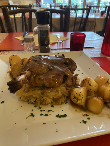 Read moreAs you cross Pant de Faisan and head south, and half way along Rue des Moulins you will happen upon this nice side walk restaurant. It is one of many in the area. If you don't want to sit on side-walk you may find it more relaxing to sit on its back terrace overlooking the canal. Food was good. Service fast. Prices very acceptable for this touristy area Strasbourg. Keep on mind that here as in many other restaurants in Strasbourg, they tend to take a "break" around 3pm. So, it wont be a surprise if the waiter asks you to pay the bill because they are closing...