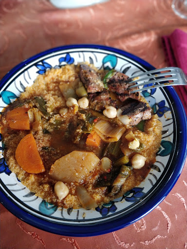 Le couscous, qui est censĂ© ĂȘtre la spĂ©cialitĂ© de la maison, Ă©tait servi avec une sauce aqueuse qui avait manifestement Ă©tĂ© rĂ©chauffĂ©e plusieurs fois. Pour le prix que nous avons payĂ©, on s'attend Ă des plats frais et non Ă de la nourriture rĂ©chauffĂ©e !