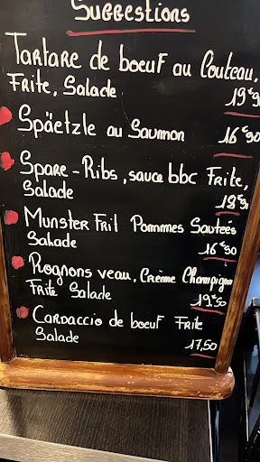Read more"Very nice restaurant with delicious food. The staff were all very friendly and speak enough English to communicate. Since the menu is available in English (+German), there are no problems with ordering or finding food, even for those who do not speak French. There is also a daily menu, which offers a very tasty selection as well. We were all very satisfied with our food (tartare, Spätzle with salmon - daily menu, sauerkraut) and the portions are generous. The wine was also very palatable. Definitely a clear recommendation for anyone who wants something high-quality at a comparatively low price. However, I recommend making a reservation in advance, as the restaurant is...