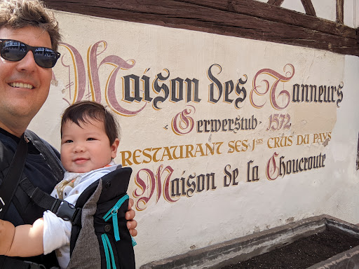 Read moreThe snails were a success we had so much fun with it as entrées at the beginning of our evening here. The Tarte aux oignons howerver was better elsewhere in Strasbourg. The soupe à l’oignon so tasty. With champaign 65€/person. A so kind and attentive service. The service team take really good care of us we were 9 with kids. In summer the serve only at the terrace inside too warm. Lovely romantic atmosphere outside on the edge of water and also with the boats coming away through the water navigation lock right there form the restaurant’s terrace. Lovely evening with the boat shows for kids and adults. The choucroute is amazing. Le dessert Prune plum au Pinot noir is so worth the price. Good espresso. The “Poire Belle Helène” dessert is a flop too much Crème Chantilly but the chocolate sauce is so tasty. It is a revisited version not the typical one. Kids menu available. The Wiener schnizel was tasty. Toilets downstairs clean. In general the price/quality ratio is good. Reservations highly recommended. Only 10 max tables under sunshades....