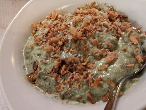 2- The appetizer and the drink which were mast bourani/mirzaghasemi and doogh were super tasteless. Doogh was the worst in my life.