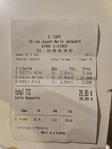 Enfin, on a remarqué une erreur dans l'addition. En effet, nous avons payé une bouteille de Gewurztraminer VT à 45€ en espèce. Nous avons également réglé mon plat et celui de ma compagne ainsi que ses boissons et avons remarqué qu'un seul plat sur 2 avait été comptabilisé. Ce qui nous a obligé à demander à un ami resté sur place de payer et qu'on lui fasse un virement.