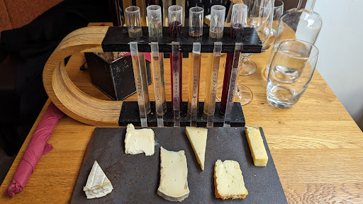 We visited on 2 consecutive days, both early evening. On the first day we were served by 2 lovely waitresses who brought us one cheese tray and a selection of 6 different wines to share. It was really fun to pour the wine from the 6 chemistry beakers. The pairing with the excellent cheeses made for a lovely culinary experience before we headed further on to dinner. We were so enamored that we returned the next day to try a different selection of cheeses and wine. Unfortunately our second experience was very disappointing. Our waiter, a man this time (perhaps the owner) insisted that we do not share the cheese and wine tasting plate as it is meant for one person. Even when we told him what a lovely experience we had had the previous evening he still insisted. When I asked him if it was a money thing and if we could just pay some extra to receive just one tray of cheese like yesterday he told us it was not about the money but that it was just not intended for one person. It got so ridiculous as I kept asking if we could please just have one plate to share since we would be going out to dinner later and just wanted a bite. We came to a complete impasse and finally gave up and left. Really disappointing since it left us with a strange feeling for about half an hour afterwards. So, while I do recommend going for the quality of the food, if you intend on sharing just make sure you order from the ladies and not from the owner. This would have been a 5 star review if not for this terribly awkward and completely unnecessary 2nd...