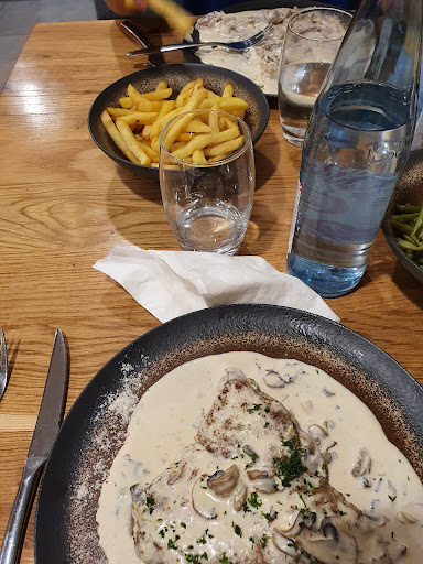 Read moreNous avons commandé 2 escalope de veau à la crème et 2 cordon bleu à la crème ! Le cordon bleu était excellent une viande sans nerf ni gras un fromage doux et une bonne charcuterie ! L'escalope mes filles l'ont adoré et ont tout mangé la viande était très bonne et la sauce excellente ! Les accompagnement tel qu'haricot vert sont bien travaillé et les pommes au four excellent ! Les bouteilles d'eau sont en verre !Nous avons pris en entrée une salade de chèvre chaud elle etait delicieuse le pain grillé parfaitement Seul petit bémol c le nestea servi de la bouteille dans un verre ! Une canette ou une bouteille aurait été préférable ! Nous reviendront et je recommande vivement...