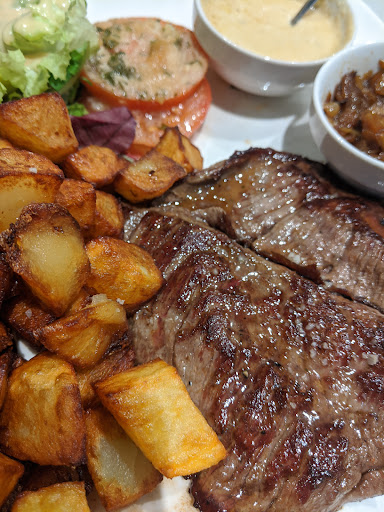 Je vous déconseille ça fait plusieurs années et fois que j'y vais avec mon mari jusqu'au jour où tout a basculé on prend toujours la même chose le rituelle moi même une bavette avec oignon et la d'un coup je voi quelque chose bougé dans l'assiette je regarde voilà le vert alimentaires😡 mon mari furieux qui se lève qui va voir la patronne la patronne qui le dit au mari le mari qui vien voir sur place qu'est-ce qu'il se passe ? j'ai dit vous le voyez pas le verre qui marche ! je vous promets il a pris avec les doigt il a écrasé sur la table il me dit ah c'est rien je pense qu'il sort de la salade tout en rigolant il me prend l'assiette me dit je vous refait la bavette j'ai dit non merci j'ai couru j'ai u le temps d'arriver à leur toilette j'ai tout vomi il mon vu tro mal mais stylé je feuse du cinéma dsl je suis sensible un rien me fait vomir je sui quand même humaine.. Bref du coup mon mari qui arrête de manger plus d'appétit je ne prends même pas le dessert qui et convenu dans le menu on se lève pour aller payer la note ce qui est normal sans commentaire et là je dis à mon mari je pense qu'ils vont pas nous faire payer le repas ebe si elle nous, dit je vous enleve juste 5e de la bavettes mais qu'elle blague on a payé svp 40e du volé c'est pas du tout commercial donc aujourd'hui je lesse un commentaire car je trouve cela honteux de leur pare sachant que on et des bon client donc faite gaffe à vo assiette sur ce bonne dégustation...