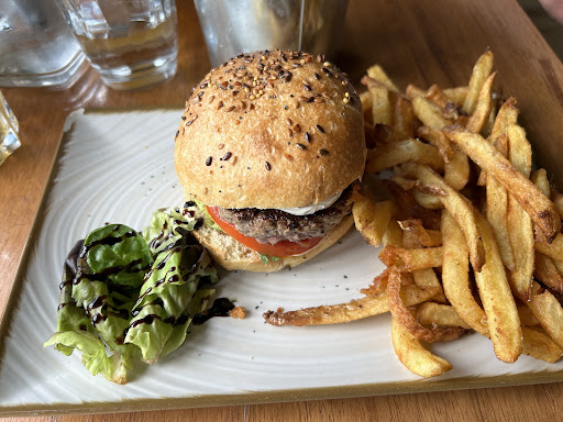 Read moreAprès une expérience cet été en terrasse je suis très déçu aujourd’hui car je n’ai pas retrouvé ce qui m’avait plu : ambiance relax et plats chauds. Les prix sont vraiment chers. L’accueil du restaurant est tout petit et avec beaucoup de désordre, les tables en bois sont toutes collantes. J’ai mangé seul et on ne m’a pas débarrassé l’autre assiette. Un des serveurs (les autres étaient ok) a une attitude nonchalante et on le voit piocher dans on ne sait quoi et manger avec les doigts avant de poser les plats à servir. De plus, il empestait l’alcool…Le bar est vraiment sale, collant et avec un sacré bordel. Les bouches d’aération/ventilation sont très sales… Les frites sont vraiment surgelées dures et m’ont été servies presque froides. Le steak haché du Burger que j’ai demandé à point était saignant dégoulinant. Bref…. très déçu de comment...