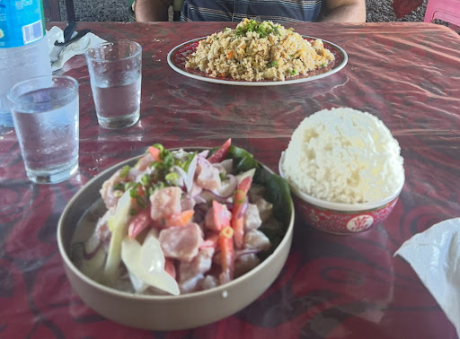 Restaurant is actually called Tepano and serves more local cuisine (fish with fries or rice, coconut curry, Chinese style rice, etc.) Food was decent; cantonese style salted fish rice was a bit salty (but very edible) and their fish-of-the-day with lait de coco was a bit under-salted but the fish was fresh and amazing. Service is amazing: they spoke both French and English, were very understanding since we took some time to order, and were very fast to offer water as well as salt+pepper with our food. Atmosphere is nice enough, with shade, but there were a lot of flies that kept trying to land on our food. The waiter did have a spinny device that kept the flies away for a short distance. Pretty good if you're in the area and need lunch but I don't think you absolutely need to drive across the island...