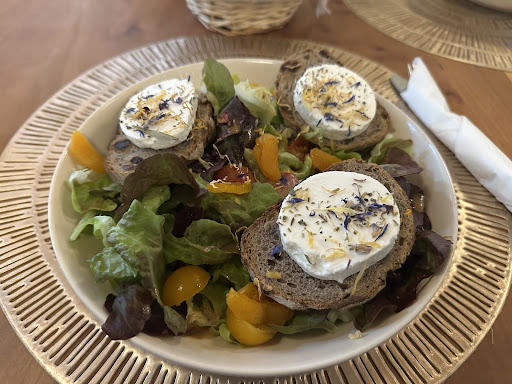 Read moreNous y sommes passés un jour de grande affluence, un dimanche d’août. Très bel endroit bien calme, bonne base dans le beau parc de Wesserling, avec un menu simple (crèmes, salades, tartes, glaces…). Nous avons pris une salade au chèvre qui nous a bien goûté, avec salade, abricots secs, chèvre du coin sur pain au noix et aux raisons toasté. Simple et bon. Le restaurant se divise en trois partie : la terrasse, le patio, à l’intérieur du centre de magasins artisanaux, et l’intérieur du restaurant proprement dit. Excellent service, malgré l’affluence (et des distances importantes à parcourir pour rejoindre la...