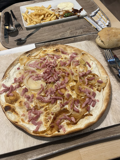 En visite dans la région, nous ne connaissions pas cette chaîne de restaurant. Pour ceux qui connaissent : ça ressemble au Flunch, mais avec moins de choix en accompagnement. Comptez entre 7 et 10€ par personnes, 5,50€ pour les enfants. Les canettes sont à 2,50€ ce qui est raisonnable ( août 2023 ) . Nous avons choisis des burger savoyard : ils sont bien garnis, savoureux et le pain est délicieux. Les accompagnements sont on choix et à volonté, nous avons pu choisir entre : frites, lentilles, chou, riz, pâte à la sauce tomate et haricot verts. Des sauces sont également en libre service : les traditionnels mayonnaise, ketchup et moutarde, et vous pouvez également prendre des sauces chaudes : sauce au poivre ou aux champignons. Pour ce qui est de la propreté des locaux : ça va, mais je pense qu'une personne supplémentaire un vendredi soir ne serait pas de trop, le pauvre serveur courrais partout. Rappelons aussi aux consommateurs qu'ils sont les premiers acteurs de la propreté du restaurant et des WC, avoir du respect pour le personnel est la moindre des choses. Une étoile en moins car nous avons trouver le restaurant peut être mal achalandé et petit. Étant habitués au Flunch des hauts de France, ça nous a fait un peu drôle. Je pense qu'avoir le buffet à volonté séparer des stand serait plus judicieux, mais après cela malheureusement ne se change pas facilement. Manque peut être un peu de cuissons au niveau des frites, mais je pense que c'est une question d'organisation. Je félicite ce restaurant d'utiliser des produits locaux (d'après le site) , c'est assez rare ! Ce serait vraiment génial d'avoir des affichages qui disent "ça viens de la.. a .. km ) ça plairait vraiment aux touristes comme nous et ça mettrait encore plus en avant le fait de consommer local ! Et en plus, ça ferait un peu de pub aux producteurs 😁 . Le cadeau des menus enfants est parfait, une petite épée a gonflé, mon fils était ravis ! Ça fait plaisir des "vrai" cadeaux . En somme, je conseille vivement ce restaurant si vous souhaitez manger un repas simple et efficace, en famille sans un budget qui explose. Nous recommandons cet...