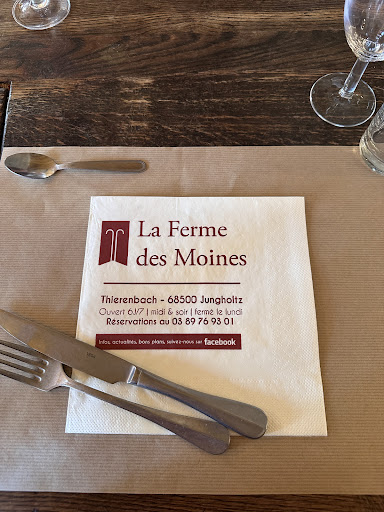 Read moreNous étions une douzaine de personnes réunis pour une soirée Tartes Flambées à la Ferme des Moines. Tarte flambées à volonté. Sauf que les tartes ont des prix différents, il faut comptabiliser les unes et les autres, (il y a 1€ de différence), et qu'il y a un supplément pour la salade verte (qui coûte 0,50€ ou 1,50€ selon que l'on choisit les unes ou les autres. C'est très compliqué. Je ne suis pas sûre d'avoir tout compris. Les planches de tartes flambées sont servies à intervalle si long qu'on en perd l'appétit à force d'attendre. Puis au milieu de la soirée, les lumières s'éteignent et on entend une voix qui annonce un spectacle de 6 mn, dont nous n'avons rien vu. Le dispositif devait être hors service mais les lumières sont quand même restées éteintes pendant un long moment... Pendant lequel on n'a bien sûr pas pu manger. C'est agaçant. On a vraiment l'impression que tout est fait pour que limiter le nombre de tartes flambées servies "à volonté" ! A la fin, nous avions mangé moins d'1 tarte flambée 1/2 + env 1/3 de tarte sucrée chacun. Pour 20€. Pour le coup, la note est salée ! Rarement vu un resto aussi mesquin et radin. Le service n'était pas agréable non plus, la serveuse étant assez pète-sec. La cerise sur le gâteau est arrivée au café quand le serveur, après avoir débarrassé les tasses, est revenu vers moi, s'est penché au-dessus de moi et a déplacé légèrement mon paquet de mouchoirs en papier pour me reprendre le morceau de sucre servi avec le café, que j'avais posé sur la table. Ils en sont à un morceau de sucre près, dans ce resto ! C'est ahurissant, je n'avais jamais vu ça. Mon conseil, faites un grand détour pour éviter...