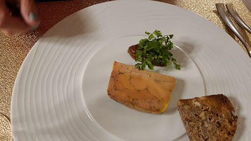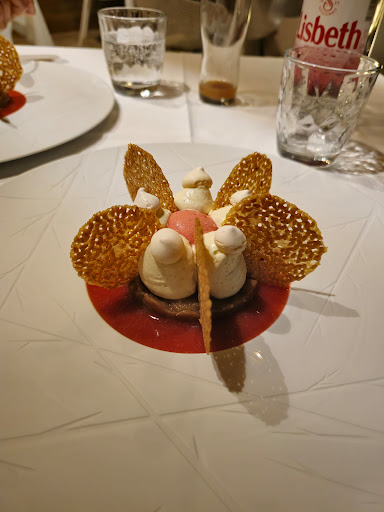 Nice quiet restaurant run by a couple with good food. All is prepared and cooked in its small kitchen by the chef and table service provided by his wife. This is not a place to eat if you are in a hurry. I had a the menu which was excellent, especially the starter and dessert. My partner ordered à la carte which was good if not a little expensive. Wine great. A nice quiet place to eat. Plenty of car parking...