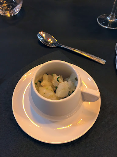 Sommes allés à la découverte de ce restaurant rouvrant avec de nouveaux propriétaires… la déco n a pas vraiment changé mais elle était déjà de très bon goût initialement, classe et sobre à la fois .. la verrière en bout de salle donne un aspect lumineux et chaleureux. L apero c est sacré pour nous , les cocktails bien que pas donnés sont bons et en grosse quantité, et nous avons eu le temps de le boire ce qui n est pas souvent le cas dans les restaurants actuellement. Nous nous sommes laissés tenter par le menu découverte, nous y étions un soir en semaine . Et quelle belle découverte , des produits de saisons , cuisinés avec soins et présentés avec goût . Un menu original et créatif . Au début on s est dit que la quantité n y étais pas mais avec le menu complet c étais amplement suffisant. Par contre des personnes qui étaient présents ce soir là se sont plaint de la quantité mais eux n avait pris qu un plat principal. Le menu enfant est également pleins de surprise , enfin, pas de nuggets et de frites mais des produits sains et frais pour éveiller les papilles des plus jeunes , ma fille était conquise .Le service attentionné et la gentillesse en plus , une carte des vins assez large feront que nous reviendrons très vite dans ce restaurant qui va se distinguer très vite des autres .. belle...