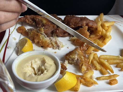 Read moreTrès euphorique d’aller manger des carpes frites et l’euphorie est vite descendue. Frites baignées depuis 15 ans dans l’huile avec une couleur jaune pas normale. Et alors les carpes… panure très épaisse, saturation max en graisse et certaines cramées mais brillantes d’huile. Ok d’accord carpes frites c’est gras certes mais toutes celles que j’ai mangé ailleurs donnaient envie et étaient clairement pas trempées comme ça dans de la vieille huile probablement. Pourtant c’est très rare que je sois un client qui râle ou dit qqch, j’ai plutôt tendance à rien dire et partir mais là c’était abusé donc je le dis pour pas qu’ils fassent ça et progressent. En tant que cuisinier je sais même pas comment on peut ne pas avoir la lucidité un moment de dire « nan ça on peut pas envoyer » enfin sans être un chef renommé c’est juste du bon sens c’est ça qui m’exaspère! Jugez par vous même sur les photos mais bon comme dit tout le reste est peut être très bon et j’ai pas eu de chance mais svp pour vous et votre resto n’envoyez plus des trucs comme ça. Bonne...