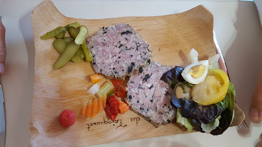 Whilst viewing the menu, the external signage was changed to full. However, when we approached the reception we were greeted with a friendly smile and a no problem attitude, let us find you a table. We were 3 people, 2 adults and 1 child. The waitress was friendly without being over bearing. Very helpful and spoke enough English to help us with our decisions. We opted for a set price menu. Although our child eats like a horse, he ate from the children's menu which was sufficient for him. He typically demolishes an adult meal. The adults had snails and a charcuterie for starters and the boy had a very nice French style salami sausage. For mains, the adults had trout, sausage in a lentil broth and the boy had a burger steak. For desserts, we had ice creams and an ice cream with meringue and chocolate sauce. We washed it down with beer, wine and lemonade. The atmosphere was pleasant, tables were far enough apart for private conversations / romantic meals. The food was good quality and what felt like traditional french food of the local area. Final bill was €99.90