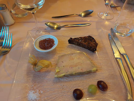 Read moreUne découverte pour nous et notre famille, qui fut bonne ! Nous avons tous pris le menu à 35€. Le foie gras et le pain d'épice étaient très réussis, pour le saumon j'ai trouvé l'assiette un peu légère à mon goût ça aurait mérité d'être un peu plus garni en saumon fumé mais c'était bon. Pour le plat tout le monde a apprécié, certains ont pris des gambas, d'autre des ris de veau. Pour ma part je n'ai pas trop aimé la sauce sous les gambas par contre donc je l'ai laissé et c'est rare mais pareil j'aurais bien mangé une ou 2 de plus. Par contre nous avons trouvé les accompagnements un peu légers. Les tomates étaient très bonnes, la purée aurait méritée d'être un peu plus conséquente et finalement l'huile de truffe n'apporte pas grand chose. Certes le goût de la truffe est bon mais finalement avec les pdt ce n'est pas transcendant 😅 et le morceau de courgette était un peu trop simple par contre. Les desserts étaient bons et copieux. Le menu enfant est très bien et est d'un bon rapport qualité prix. Pour les adultes je pense qu'il manque un chouia (quantité et élaboration) dans l'assiette pour le prix mais c'est une belle découverte. Le lieu est très agréable, l'accueil du chef très chaleureuse et avec le sourire et le service très pro et efficace ! On attend pas et on ne manque de rien ! Une...