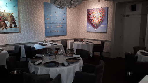 Read moreUne merveilleuse découverte (pas évidente à trouver) ! Depuis l'accueil, probablement par le Maître des lieux, jusqu'au dessert (carrément SUBLIME) : tout était quasiment PARFAIT. Tout d'abord, le cadre : dans un environnement naturel & bucolique, les salles sont décorées avec fraîcheur et raffinement (tableaux & objets d'art en vitrines, que j'ai trouvés magnifiques !). Nous avons retrouvé, transposée, la touche de la Tour d'Argent. Quant à la carte : en plus d'être originale, elle tient sa promesse de ravir les yeux & les papilles ! Les amuse-bouche initient le fil conducteur du repas : des alliances surprenantes, jamais décevantes. La perfection serait atteinte avec des portions d'accompagnement & de sauce (tant pour le canard que "souris d'agneau à la marocaine") plus généreuses. Les frites (commandées en absence de réel accompagnement : l'écrasé de pommes de terre, ou la semoule pour renforcer la dénomination du plat, aurait été parfait pour compléter le souris) auront été la seule fausse note, ainsi que le choix d'assiette très sombre, ne mettant pas en valeur la sauce du canard braisé. Le service était lui aussi à la hauteur : rapide, discret, efficace et chaleureux. Encore BRAVO et impatient de renouveler cette exquise...