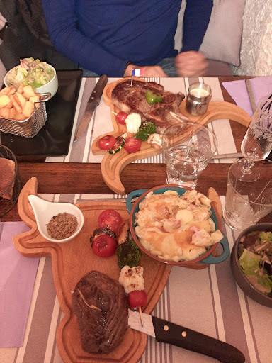 Petit groupe de 5 amis, nous avons d’abord été agréablement surpris par l’alcôve dans laquelle nous avons mangé, très intimiste. Nous avons pris le menu du pays (21e) qui contient une option végétarienne, ce qui est suffisamment rare pour être notifié. Les plats sont bons, copieux. La carte des vins est courte, manque de variété et de qualité. Nous n’avons pas pu finir le pichet que nous avions commandé. Les desserts compris dans notre menu furent très décevants, en particulier les glaces « sorbet ». Au goût nous avons été inquiets de la qualité de celles-ci, nos craintes se sont confirmées plus tard, lors du règlement, lorsque nous avons constaté des bacs de glaces « sorbet framboise et citron » marque repère. A la carte ces deux boules de glace marque repère qui baignent dans du sirop, quelques myrtilles et une chantilly industrielle vous coûterons 6,5e. Concernant le service, la serveuse a été très agréable avec nous cependant elle ne semble pas porter cette même attention à son collègue. C’est dommage car cela tend l’ambiance dans le restaurant. En conclusion, les nombreux avis positifs sont à...