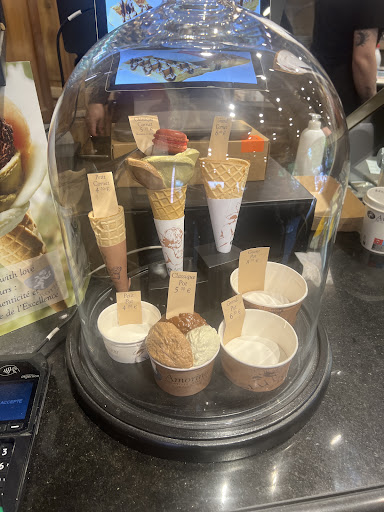 Read moreUn après-midi de mai, nous entrons dans ce glacier. Impression nette de manque d'hygiène. Tables qui restent non débarrassées, sol sale, tables non nettoyées, en désordre, vitre de présentation des bacs de glace pleine de marques grasses de mains. 4 personnes derrière le comptoir de service. Un employé passe de la caisse, aux toilettes clients (il s'occupe notamment de vider la poubelle) dont un est a priori bouché - ce qu'annonce une employée lorsqu'elle interpelle une dame en lui demandant si elle se rend au toilette - au réapprovisionnement des bacs de glace.. dans la foulée, sans qu'on le voit porter de gants ni suivre de procédure particulière d'hygiène. J'espère qu'il s'est lavé les mains en arrière salle. Il y a parfois une petite queue de clients qui se forme, vu la configuration de la file d'attente, mais sans que ce soit le rush. Il y a de nombreux temps morts pour le service client, et le personnel disparait dans l'arrière salle. Bref. J'ai à moitié...