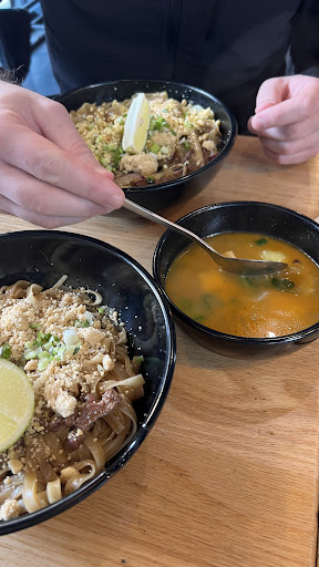 Read more1h30 d'attente en comptant l'attente avant de commander (qui a dû durer 10min) , des personnes étant arrivées après ont été servis avant. Je me suis levée 3 fois pour essayer de demander où en était ma commande; impossible de parler à qui que ce soit. J'ai pu accoster la personne semblant être le manager pendant qu'il servait une table d'au moins 10 personnes (qui sont arrivés bien après nous, nous étions 2 personnes à attendre depuis plus d'une heure) et quand je suis lui ai dit que nous attendions tout ce temps il m'a dit que ma commande était prête et effectivement il m'a tendu la salade de mon compagnon en me disant qu'il arrivait avec mon Pad Thai. Pour s'excuser de l'attente nous avons tout de même eu le droit aux noix de cajoux (2.30 ou 2.80 euros pour 50g ! En enlevant l'air je dirais une vingtaines de noix ) je vous avoue que nous aurions été bien contents de les avoir pendant l'attente de nos plats, mais le geste est gentil. Payer 2 euros un mini paquet de chips crevettes minuscules à moitié plein et 1 euro de supplément pour une mini dose (même pas une cuillère à café) de piment... ça fait chère la franchise ! De plus, le plat de mon compagnon n'était vraiment pas très consistant, heureusement que le Pad Thai est bien garnit. Cependant, le goût n'est pas au niveau de mes attentes. Rien à voir avec un Pad Thai thaïlandais, à ce niveau et à ce prix je vous conseille royalement le Pad Thai préparé (par une thailandaise) au marché de Thionville le samedi matin ! Je ne pouvais pas m'attendre à grand chose venant d'une franchise, les jeunes de la cuisine semblent un peu débordés quant à ce nouveau job en plein rush, mais 1h30 en pleine semaine; un lundi où nous étions arrivés à 19h30/20h ! C'est...