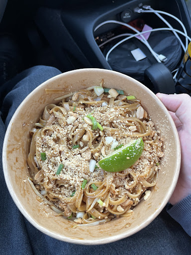 Commande effectuée et payée à 10:00 ce matin, sachant que ma pause déjeuner est courte donc je fais une commande en pensant pouvoir récupérer mes 2 plats en temps et en heure. Arrivé à 12:20, le responsable à la caisse me dit que « non, la commande n’est pas prête mais ils s’en occupent » . C’est logique étant en avance de 5 minutes. 12:25, j’attend debout devant le comptoir, mais rien n’est prêt. 12:30, une commande à emporter est disponible, mais malheureusement pour moi, ce n’est pas pour moi, mais pour une commande prévue à 12:35. Pour la mienne, toujours pas d’info mais « il y a beaucoup de monde » me dit le responsable. La frustration commence car comment comprendre qu’une commande postérieure à la mienne est déjà prête, mais que celle prévue pour 10mn plus tôt, n’est même pas commencée. Je passe sur les tensions visibles depuis la salle entre les membres d’équipe et le responsable. A 12:40, je vois qu’un de mes 2 plats est prêt, et attends désespérément que le second soit cuisiné. A 12:50, je demande à nouveau un statut de ma commande. Toujours rien, et la même réponse « il y a du monde et du retard » . Personnellement, si je fais du click & collect 2 heures avant l’ouverture, c’est pour éviter d’attendre. 12:55, enfin ma commande m’est donnée, sans un mot d’excuse… 13:00: fin de ma pause déjeuner, donc je mangerai à mon bureau tout en travaillant… Mon plat, ayant attendu 20mn est presque froid. Je cherche le supplément boeuf payé, mais ne le trouve pas: ration classique du même plat pris sur place il y a quelques jours! Le Chicken satay, lui a reçu exactement une petite feuille de coriandre en plus (cela fait cher le bouquet…) et pas de cacahuètes en plus malgré le supplément payé