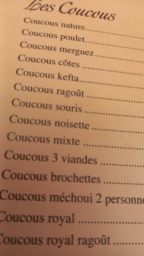 Après une longue attente, nous sommes accueillis par un mystérieux individu vêtu d'une tenue "Intermarché". On nous propose ensuite la carte des "coucous" (photo à l'appui) Un des 10 convives demande la description d'un plat, le serveur le lui explique dans les moindres détails mais conclut par "on en a pas : c'est sur commande". La prise de commande est épique : Le serveur nous lit le menu ligne par ligne et nous devons lever le doigt quand il cite le plat que nous souhaitons. À la demande de la carte des vins, on nous informe que c'est au client d'amener son propre vin car le restaurant n'a pas la license. Le serveur nous précise que si nous en avons dans notre voiture nous pouvons aller le chercher. On nous sert alors le fameux "coucous" qui était copieux et très correct. Arrive alors le moment des desserts dont plusieurs sont manquants et d'autres disponibles uniquement le soir. Les pâtisseries orientales étaient dans l'ensemble savoureuses, quant à la glace "Suspens", là est le suspens : Où est la meringue ‽ La pâte à choux des profiteroles avait un goût de carton. Nous avons ensuite dû débarasser la vaisselle nous même. Je mets quand même 2 étoiles car le serveur était sympathique. Nous avons quand même passé un bon moment mais nous avons mieux mangé...